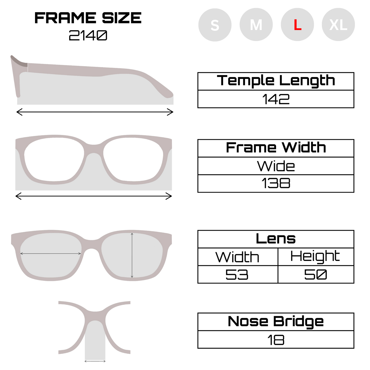 - Temple Length: 142mm